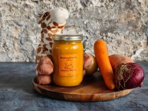 Notre Mafé Bœuf a été pensé pour respecter la richesse des traditions culinaires africaines tout en répondant aux besoins spécifiques de l’alimentation infantile. Préparé avec du bœuf fondant, des légumes bio mijotés et une sauce douce à base d’arachide, il offre une texture onctueuse et un goût délicatement parfumé.